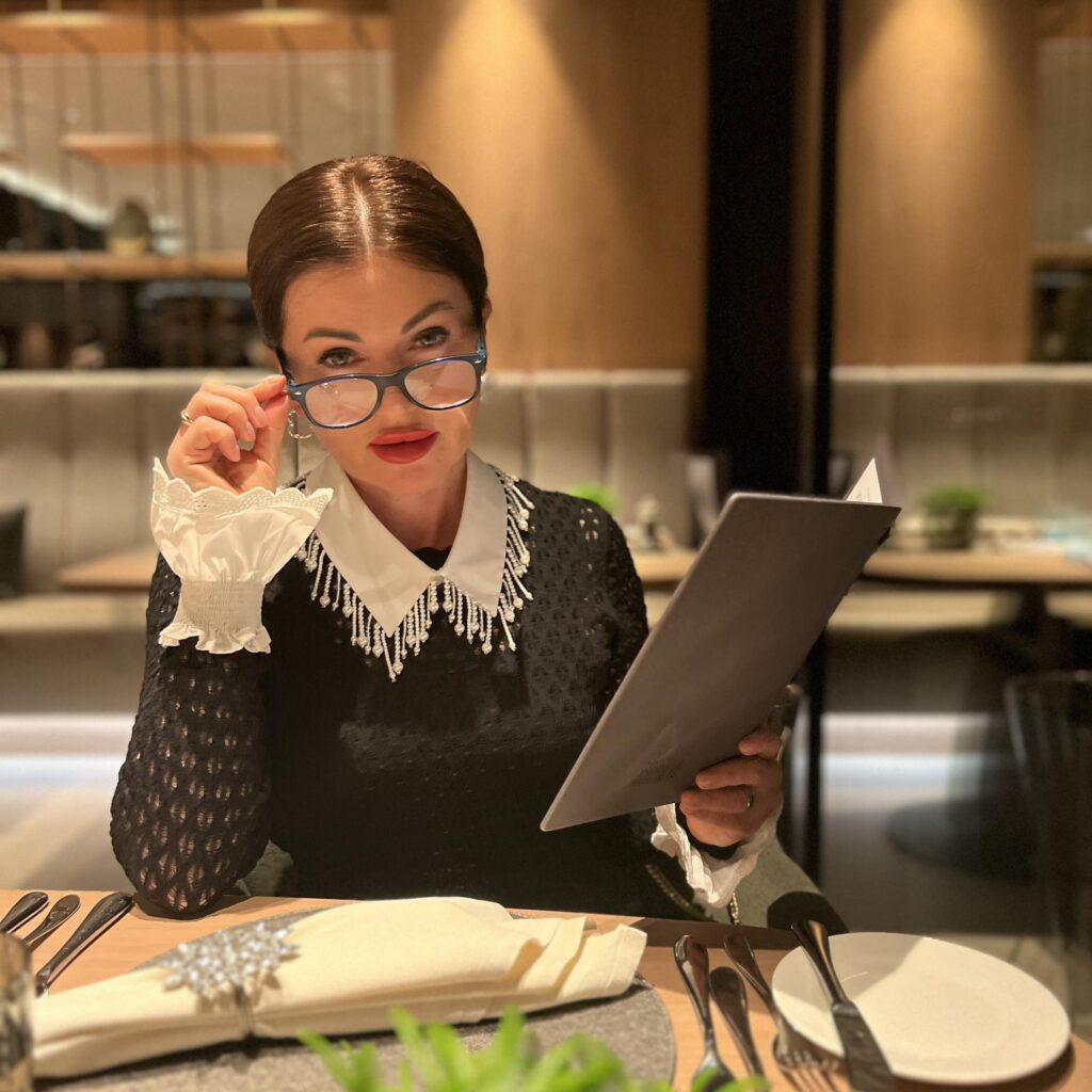 Але з часом Ірина зрозуміла ще одну важливу річ: одяг — це лише частина образу. Можна бути найстильнішою, але без манер образ не буде повним: «Мені не вистачало розуміння, як триматися, як себе подати. Я хотіла знати, як правильно їсти сир, як пити каву, хто першим вітається. Мені було важливо зрозуміти етикет не як сухі правила, а як прояв поваги до себе та інших. Саме тому я прийшла до Школи етикету. Ці вишукані манери, доброта та ввічливість дають мені надію, що люди зрозуміють: українці — неймовірні. Ми сильні, мужні, роботящі. У нас чистий дім, квіти навколо, випрані речі. Ми охайні й багатогранні, як діаманти».