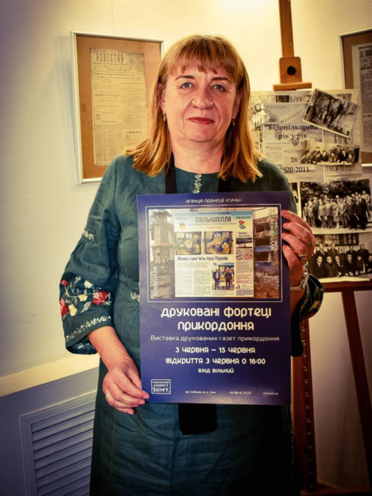 Ініціаторкою та рушійною силою цієї виставки стала Наталія Калініченко, редакторка прифронтового медіа ТОВ «Медіа-центр «Білопільщина». Саме її небайдужість та розуміння важливості збереження друкованої спадщини дали змогу зібрати та представити широкому загалу цінні експонати