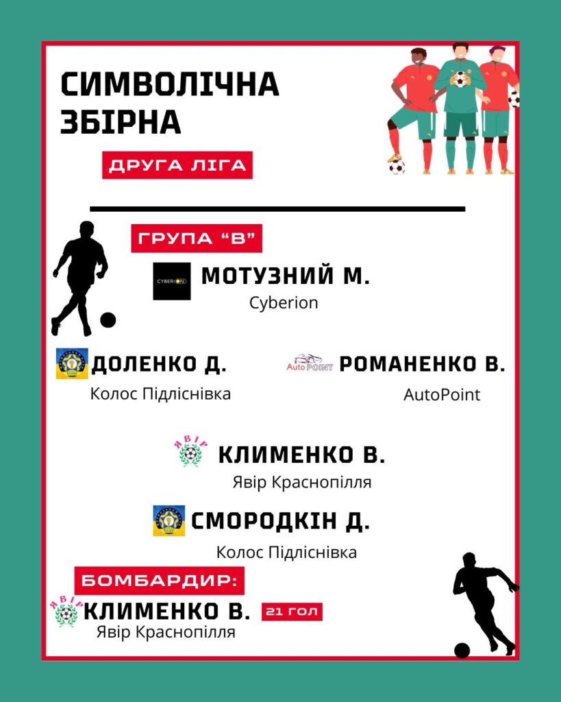 Особливу увагу привернув лідер краснопільського «Явора» — Віктор Клименко. Форвард не просто увійшов до символічної збірної, а й виборов титул кращого бомбардира сезону. З неймовірним показником у 21 забитий м’яч, Віктор став справжнім жахом для захисту суперників, підтвердивши статус одного з найнебезпечніших нападників області.